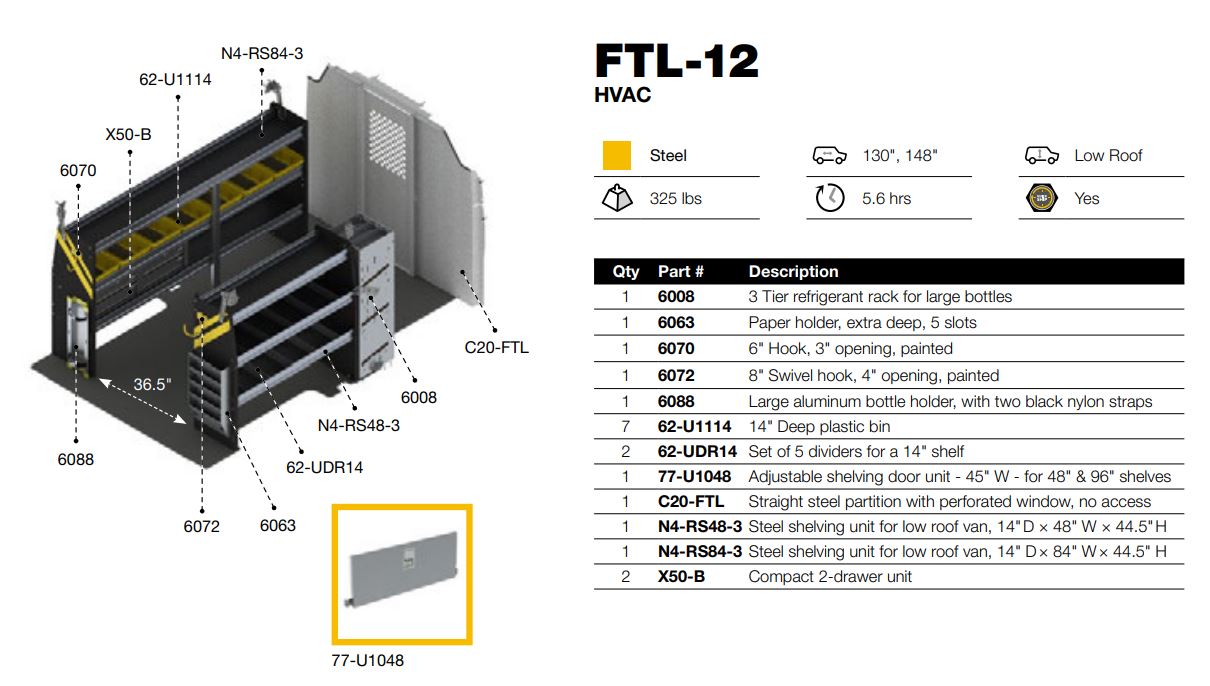 HVAC Van Shelving Package, Ford Transit Low Roof – FTL-12