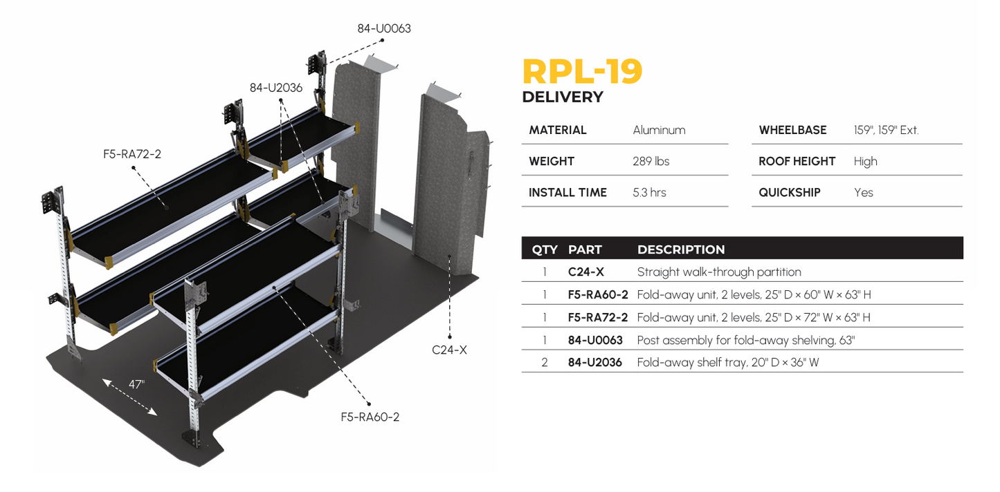 Delivery Van Shelving Package, RAM ProMaster, 159” WB – RPL-19