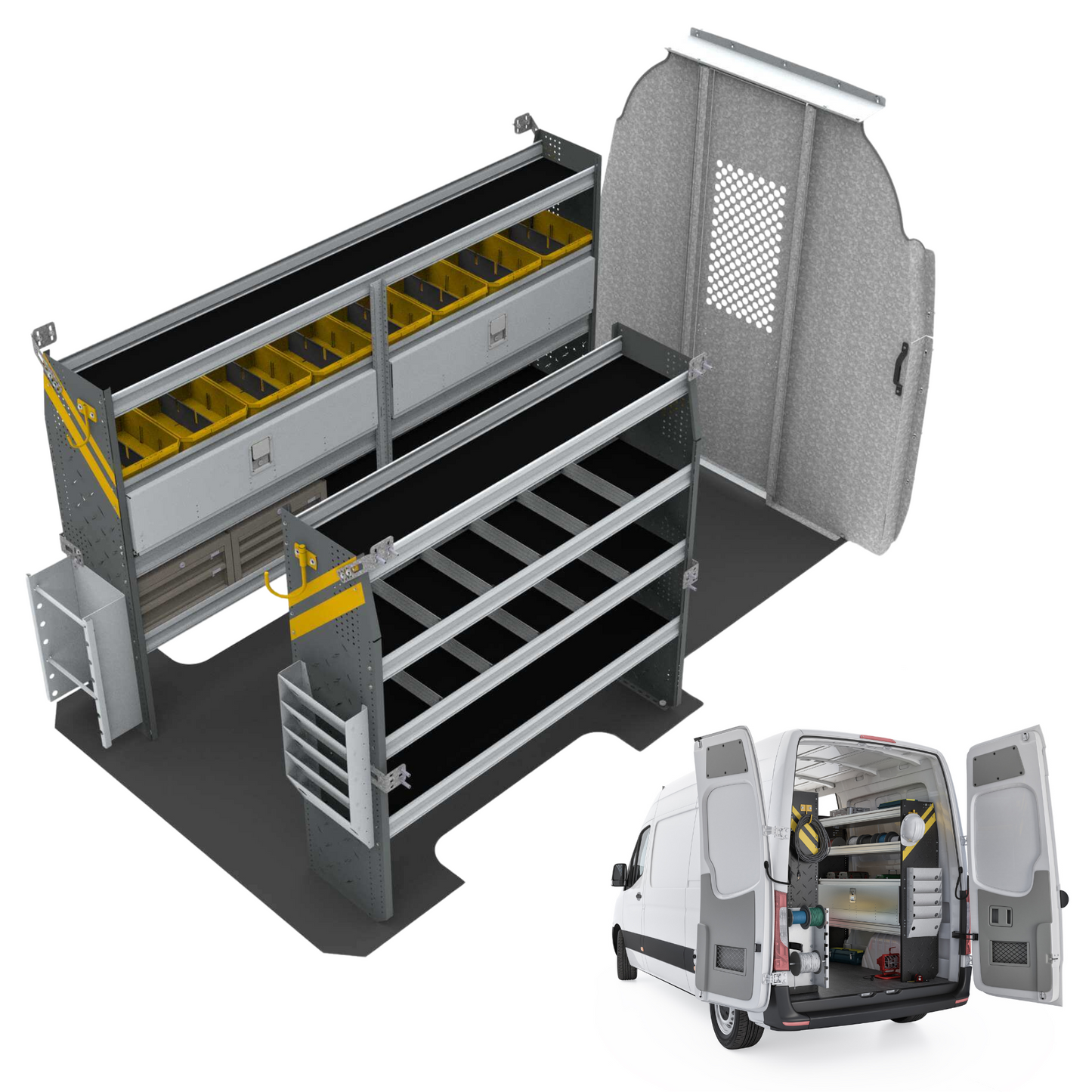 Electrician Van Shelving Package, Mercedes Sprinter, 144” WB – DHS-11