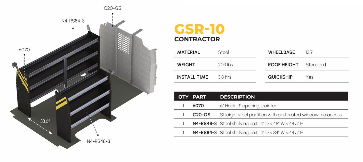 Contractor Van Shelving Package, Chevrolet Express, 135” WB – GSR-10