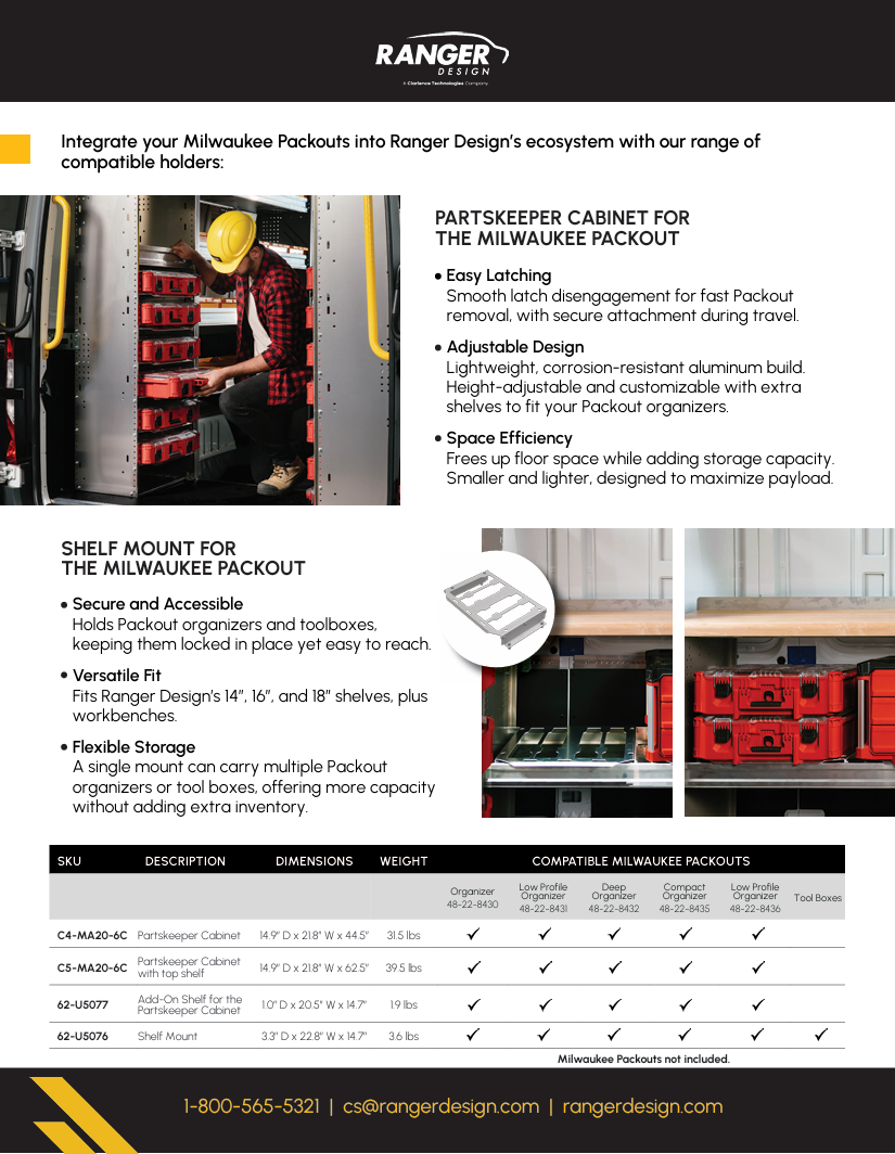 Ranger Design, a leader in work vehicle storage solutions, is taking organization to the next level with the launch of its new Partskeeper Cabinets and Shelf Mount for the Milwaukee Packout system. Purpose-built for tradespeople and fleet operators who demand strength and organization, this expanded product line seamlessly connects Milwaukee Packouts to Ranger Design’s trusted storage ecosystem.