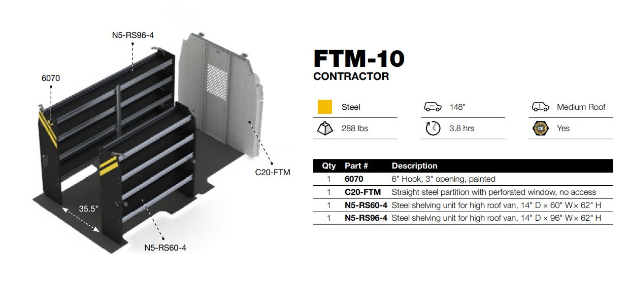 Contractor Van Shelving Package, Ford Transit Med Roof, 148” WB – FTM-10