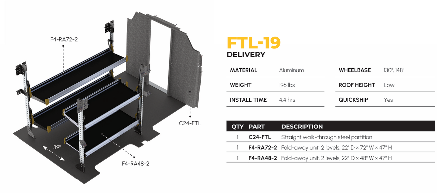 Delivery Van Shelving Package, Ford Transit Low Roof 130", 148" WB – FTL-19